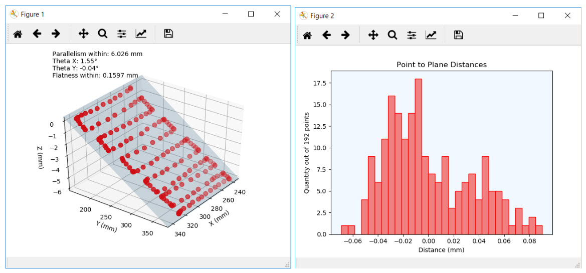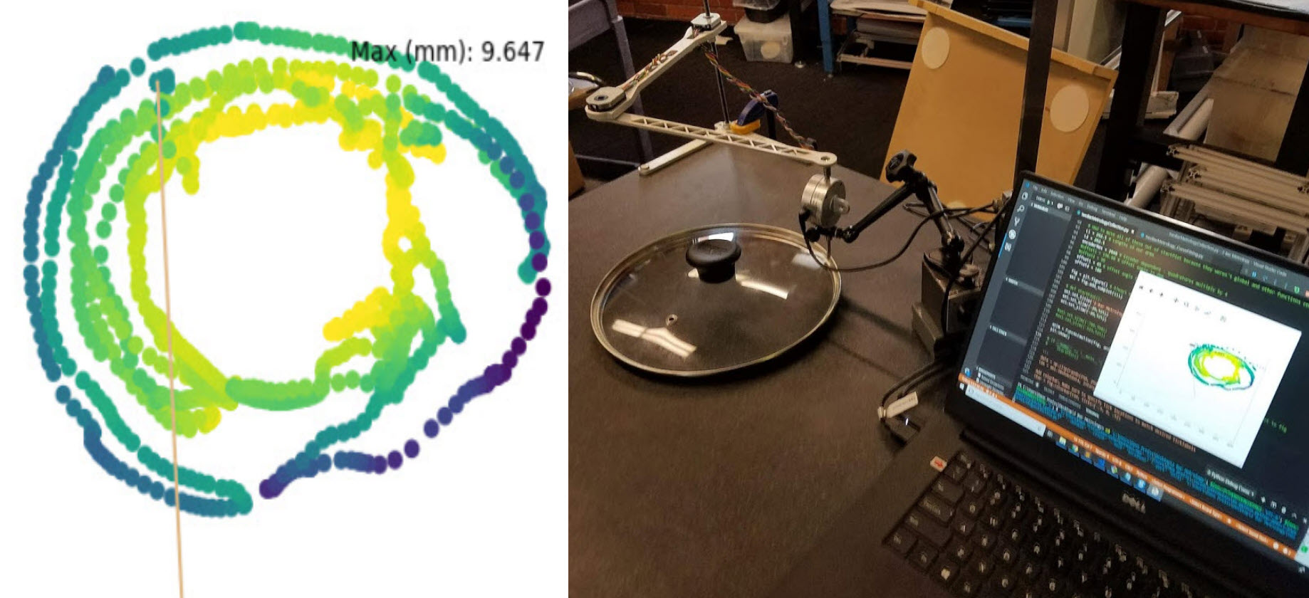 CMM's are typically used to separate these two measurements where XYZ point collection are all automated, and then a plane is fit to the inspected surface. You can effectively achieve the same thing by plotting your points in a spreadsheet, but I wanted to build a tool to automate XYZ point collection for the manual dial indicator + surface plate scenario. I used two AMT102 rotary encoders from another project to create what amounts to a driven SCARA arm that sleeves over a dial indicator (without constraining it in Z), and follows it around a surface plate as an operator takes measurements in Z. Through work I have a script that pulls data via USB from a cheap iGAGING dial indicator, which amounts to measurement of all 3 axes.